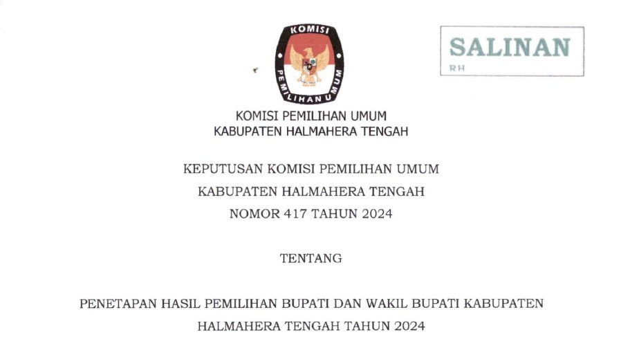 KPU HALTENG MENETAPKAN HASIL PEMILIHAN BUPATI DAN WAKIL BUPATI KABUPATEN HALMAHERA TENGAH TAHUN 2024