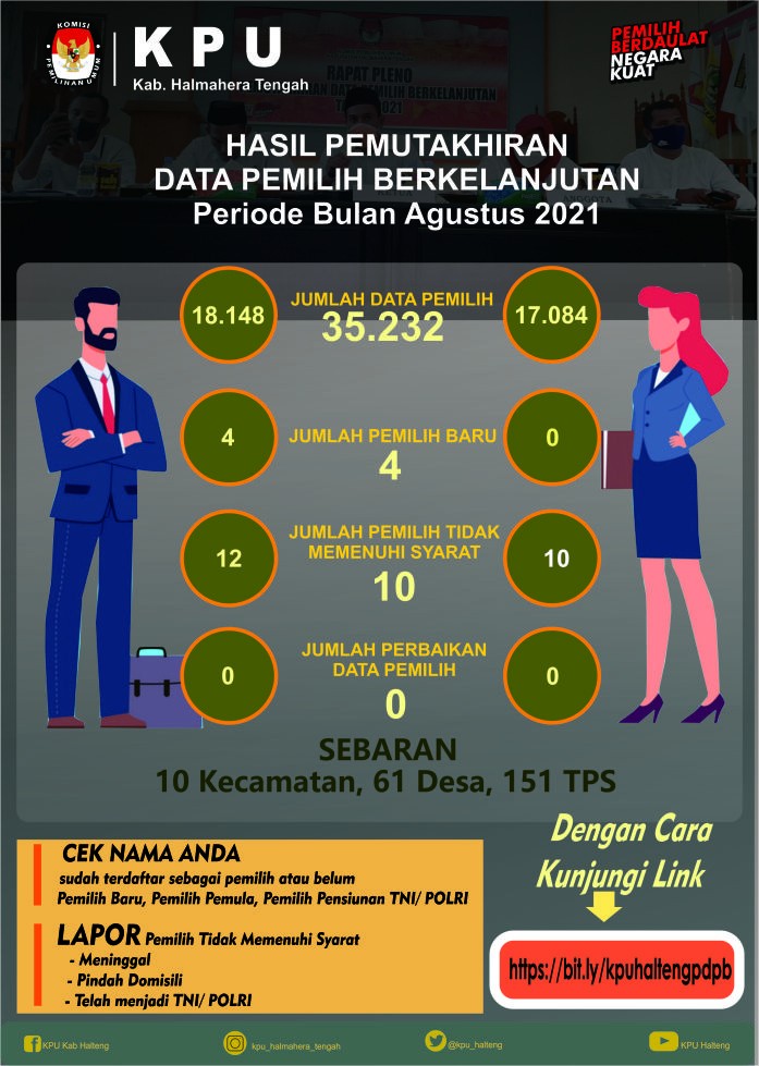 InfoGrafis PDBP KPU Kab. Halmahera Tengah Tahun 2020 Kamis, 30 September 2021 00:00 654 InfoGrafis Pemutakhiran Data Pemilih Berkelanjutan Tahun 2020 KPU Kabupaten Halmahera Tengah Baca Selengkapnya
